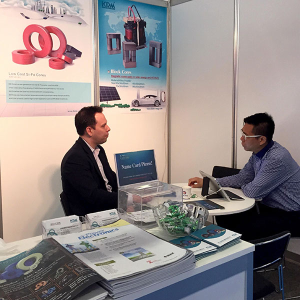 這是我司第一次參加柏林線圈展,我司參展代表駐香港辦技術(shù)銷售經(jīng)理Alan先生熱情而詳細(xì)地向前來展廳參觀的參展者介紹宣傳我司的納米金磁粉芯,超級鐵硅鋁磁粉芯,低成本硅鐵磁粉芯等產(chǎn)品。